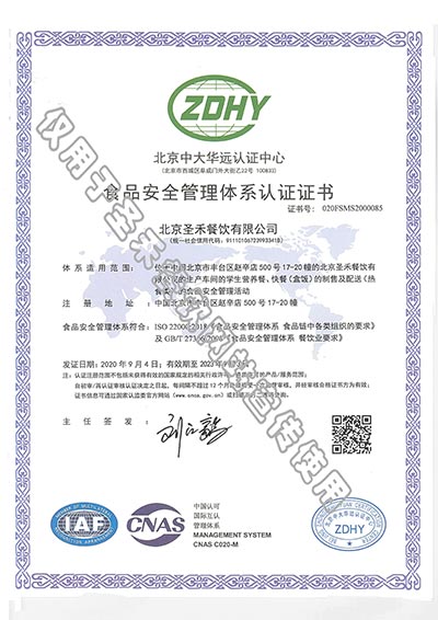 ISO 22000 食品安全管理体系认证证书-英文